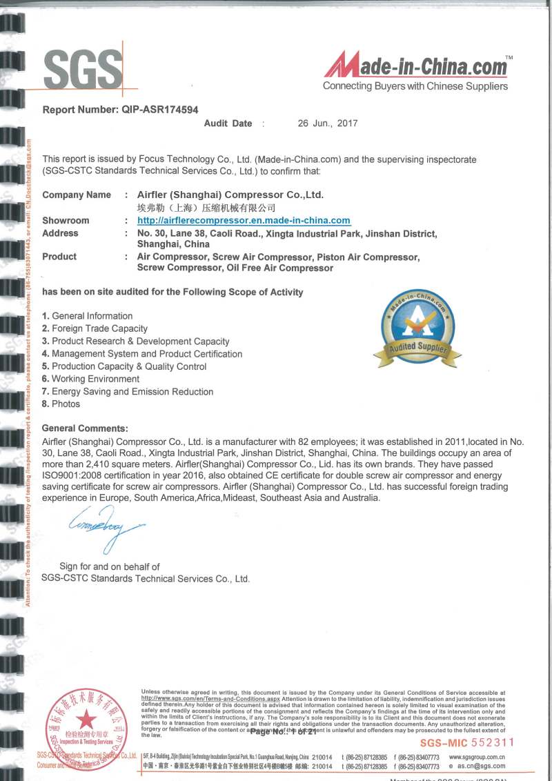 Airfler (Shanghai) Compressor Machinery Co., Ltd. is an air compressor system manufacturer integrating industry and trade.